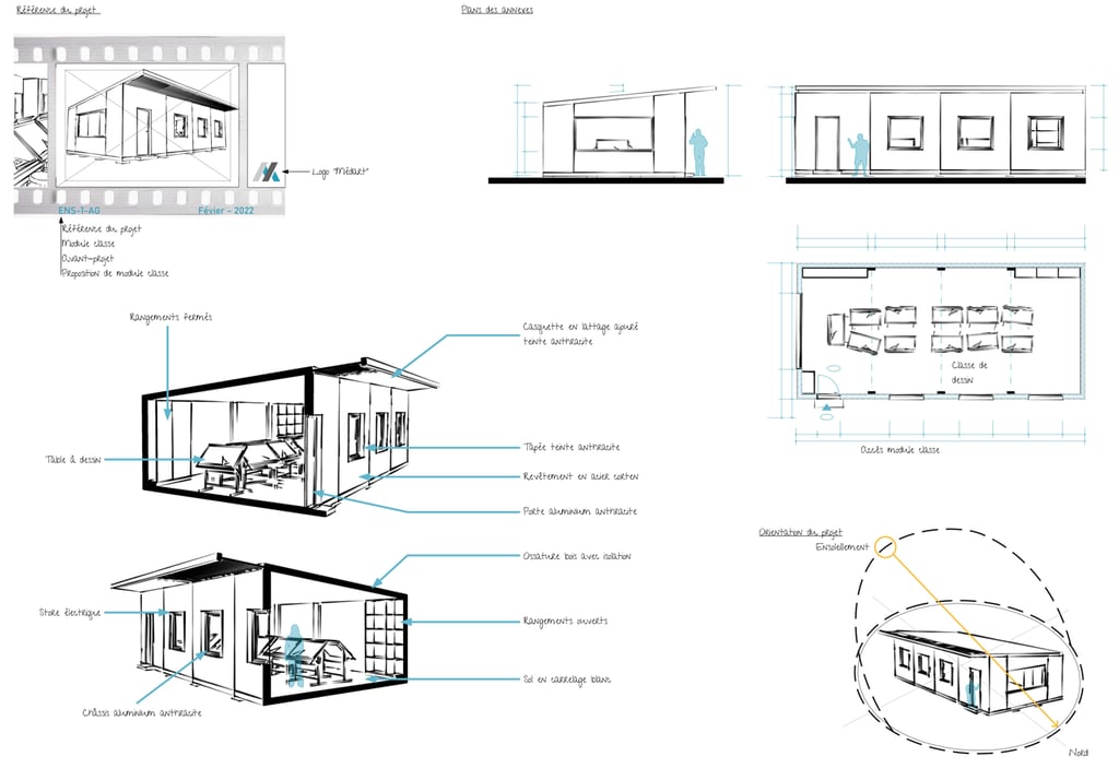 Le projet vise à concevoir des modules de classe temporaires, destinés à accueillir des élèves pendant la durée des travaux dans les établissements scolaires. Ces modules doivent être fonctionnels, confortables et facilement adaptables aux besoins pédagogiques.